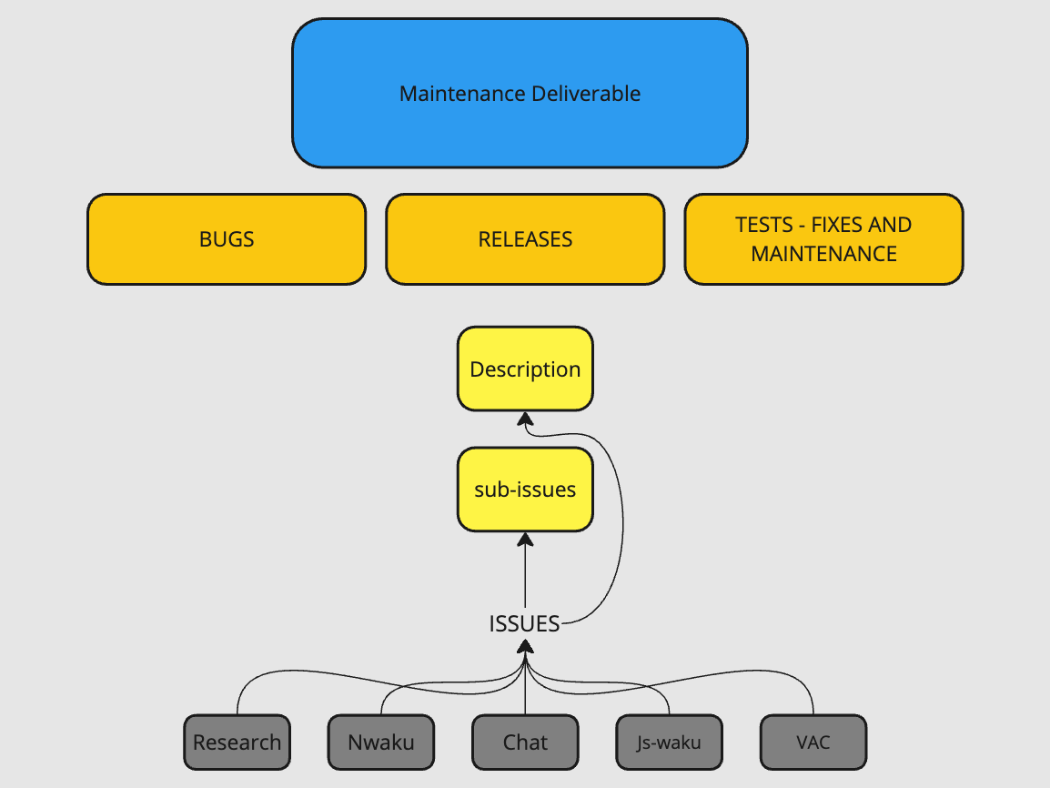 - Use the [Maintenance Deliverable](https://github.com/waku-org/pm/issues/275) for Maintenance, Tests, and Bugs that do not have a parent Milestone or Deliverable.